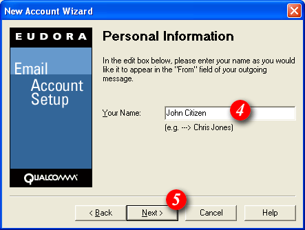 | 4)Enter your name as you would like it to appear on outgoing email messages. | ||