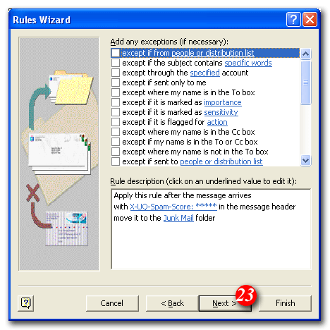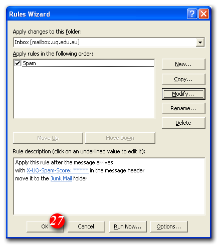 | 25)Put a tick in the 'Run this rule now on messages already in the "Inbox"' checkbox (optional) |