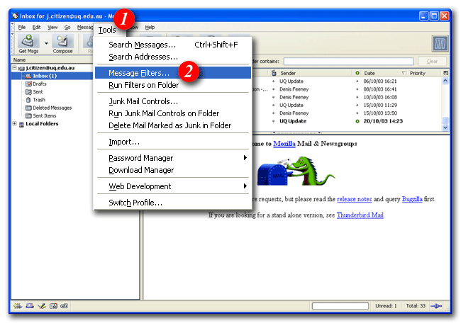 Please ensure that your e-mail account is working correctly before using this guide. If you are able to send and receive e-mails without any problems, you should not have any difficulties using this guide to filter junk mails into a 'Junk Mail' folder.